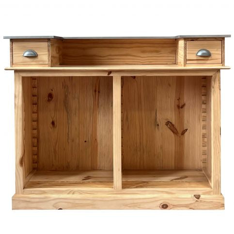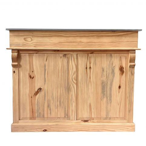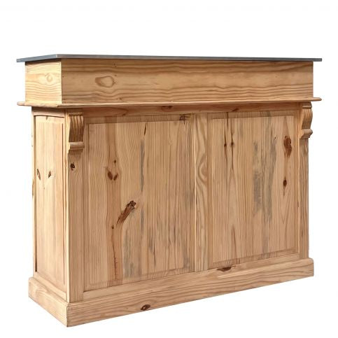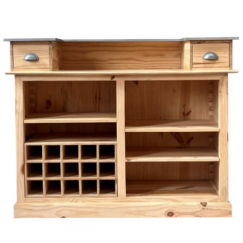 Apportez caractère et fonctionnalité à votre intérieur avec Le Barnoa, un comptoir bar en pin massif à la finition naturelle légèrement vieillie, surmonté d’un plateau en métal brossé au style industriel.