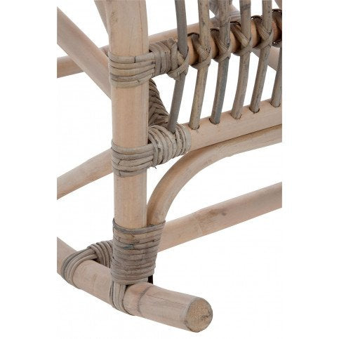 Son assise ajourée et son dossier hautement travaillé offrent un confort enveloppant, tandis que sa structure robuste assure une excellente stabilité. Son teinté gris naturel apporte une touche apaisante à tout intérieur, du salon cocooning à la véranda lumineuse.
